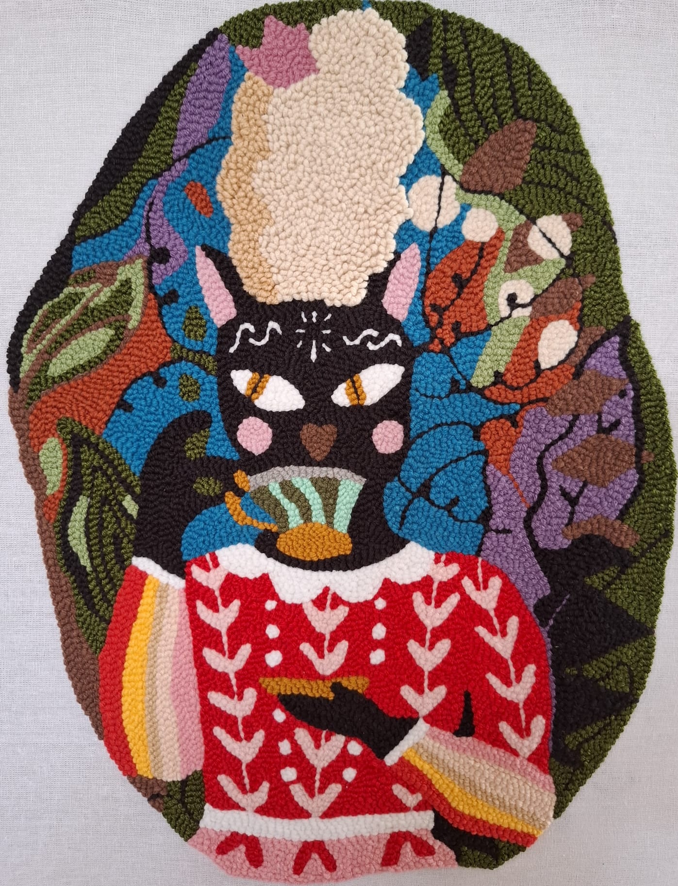 El yapımı çerçeveli punch tablo (Gizemli kedi figürü )