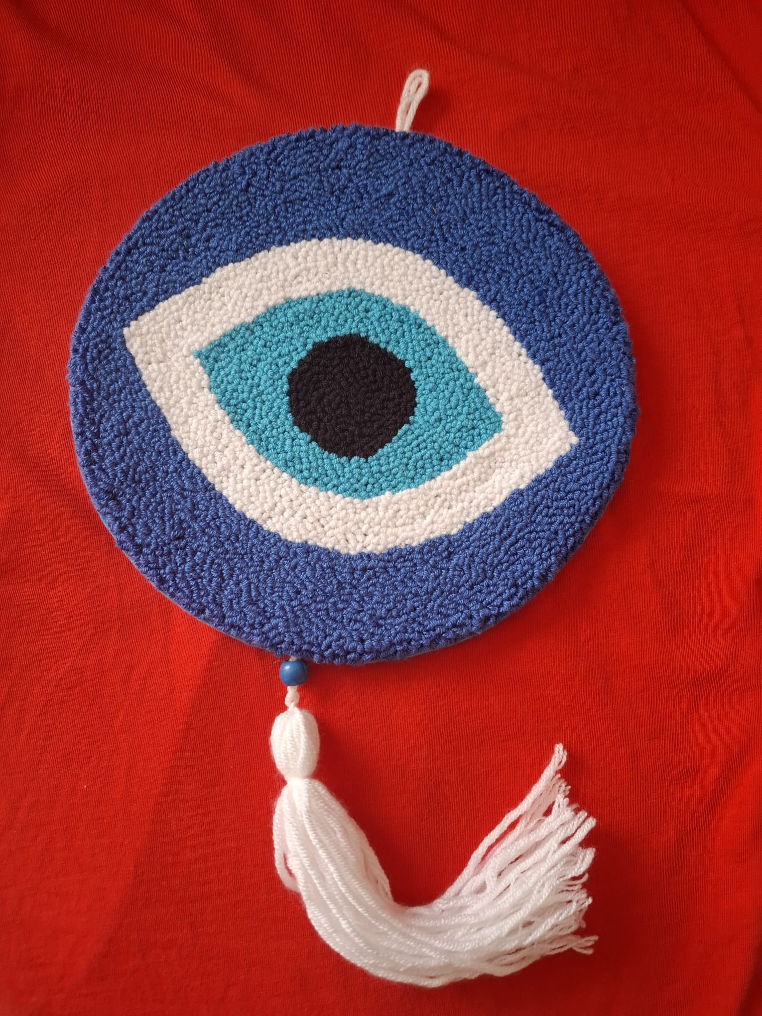 Tek parça halinde gelen bu nazarlık kolay montaj avantajı sunar ve duvarınızda şık bir görünüm oluşturur. Arkası kalın keçe ile kapatılmıştır. Tamamı el ile işlenmiştir. Hem dış hem de iç mekanda bulunduğu ortama keyif katar.