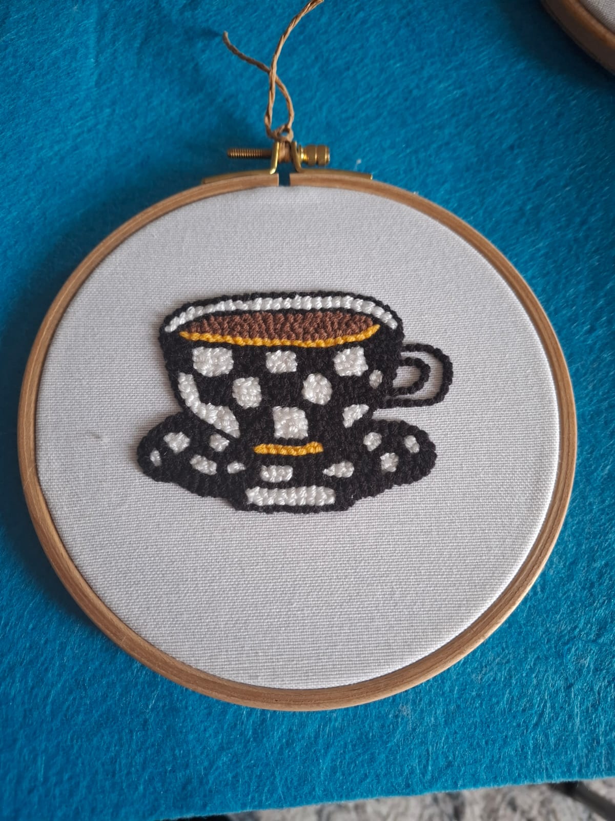 El yapımı punch nakış duvar süsü - kahve keyfi temalı
